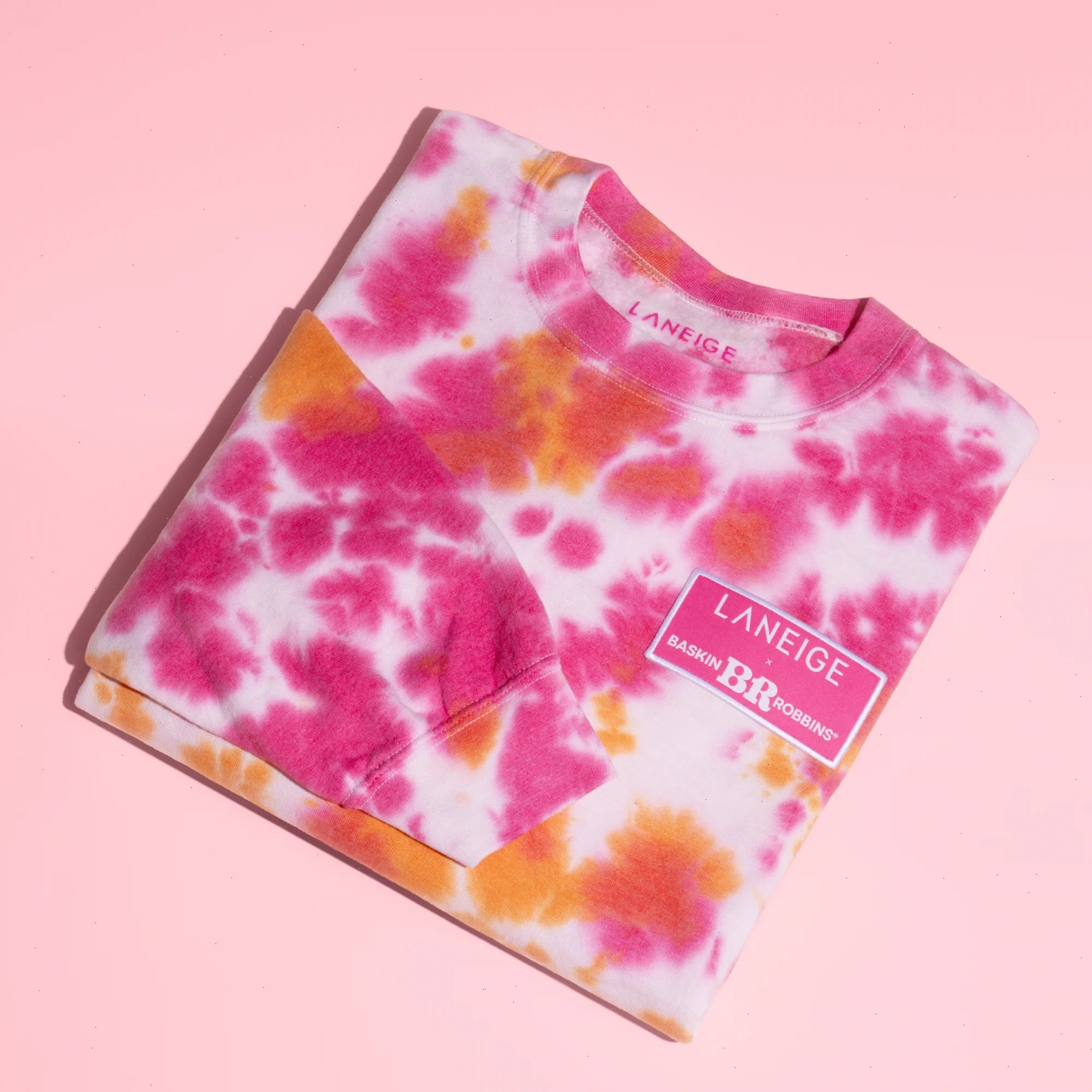 A limited-edition crewneck sweatshirt in pink and orange tie-dye to match with our marbled Lip Sleeping Mask Rainbow Sherbet. Exclusively sold online & at the Laneige Store at The Grove LA. Available in sizes XS-2XL. Get yours before it’s gone!